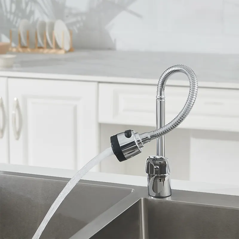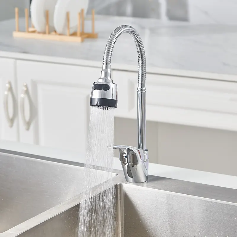 Keran dapur dengan kepala pemercik bunga boleh berputar sehingga 360 °, yang meliputi seluruh kawasan tangki air; Ia menyediakan tiga mod saluran air (mandi yang tenang dan lembut, bertekanan, dan berus air berganda yang kuat) untuk memenuhi keperluan pembersihan yang berbeza.